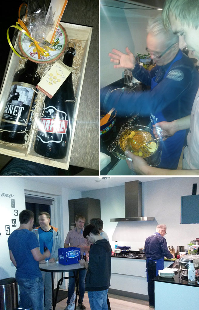 Zaterdag 14 januari moesten we om 16:00uur aanwezig zijn. Deze keer niet om te vertrekken naar een wedstrijd maar om te beginnen aan de eerste teamdag van dit seizoen. In de week naar deze dag toe werden de voorbereidingen al getroffen, bier werd bezorgd, hangtafels gebracht en ook een krat vol speciale bieren. Dit alleen al beloofde een gezellige avond te worden voor de Heren 1. Sjim en Robin van de organisatie hadden het draaiboek klaar en Frits onze coach zou deze avond voor het eten zorgen. Lichte paniek brak uit toen de organisatie erachter kwam dat ze geen chips en pinda’s hadden gehaald maar Frits maakte zich daar geen zorgen om. Frits wist wat hij klaar gemaakt had en dat we geen honger zouden hebben na het 4 gangen menu wat hij voorbereid had.