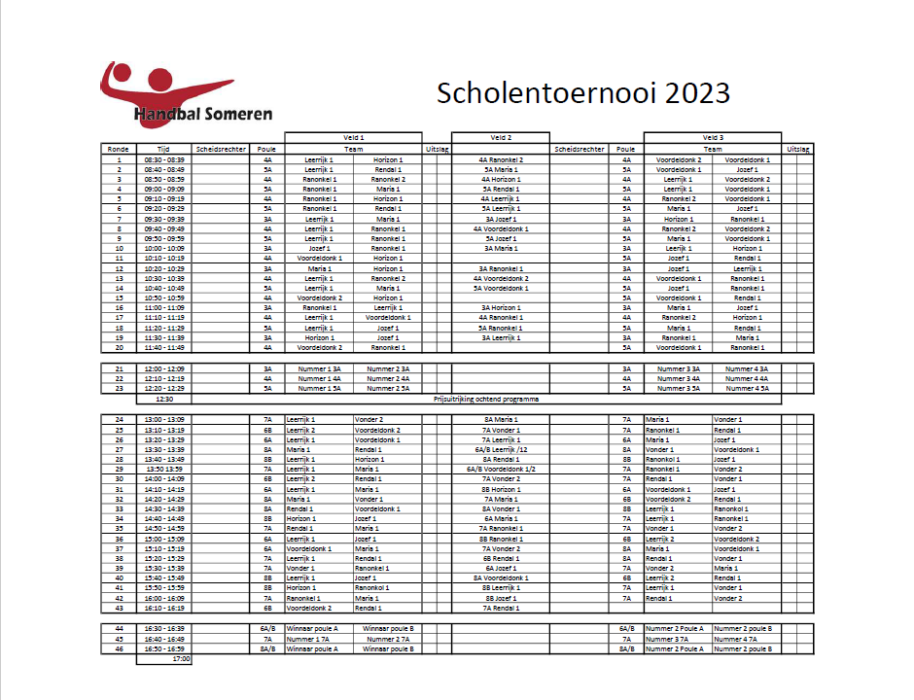 Speelschema scholenhandbaltoernooi